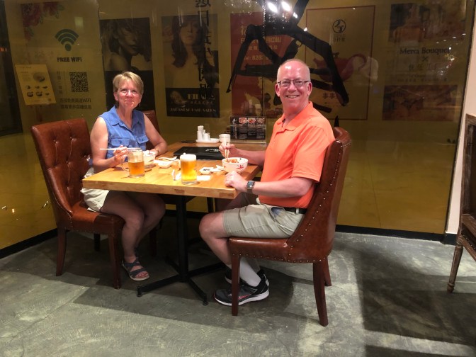 The massage was in an elegant room with two massage beds, covered with elegant fabrics. We sat on stools and put our feet in tubs of hot water while the masseuses gave us a neck and shoulder rub. After about 10 minutes of this, they washed and dried our feet, and we laid down on the beds for about 50 minutes of foot massage. If you have never done it, and you get the chance, do it. It is very relaxing, and in this establishment, they had the lights turned down low, and music playing softly in the background as we got the massage.