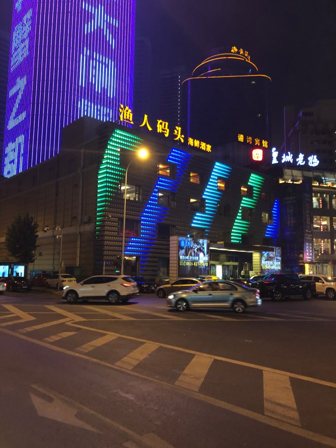 We walked back to the hotel, it is only about a mile, and saw more of the Dalian skyline lit up at night. There are an awful lot of tall buildings that are very pretty to look at for a 2nd or 3rd tier city.