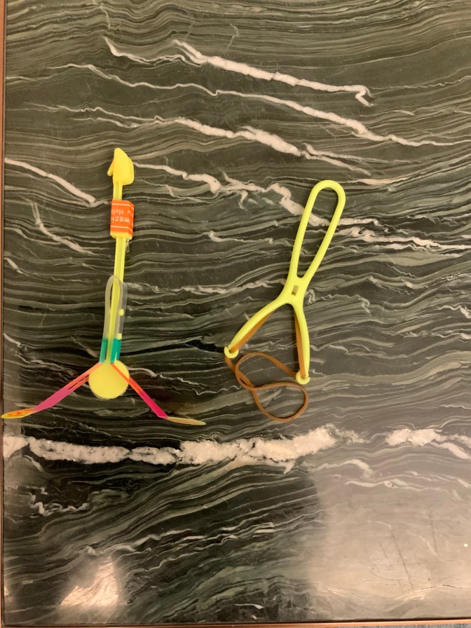 In the background of the photo, in the air, are tiny lighted toy rockets, for lack of a better description. The rockets are launched with a slingshot with a rubber band, and have a little LED light on them and an aperture that makes a whistling noise. After watching all the children and the fun they were having with them, i of course had to get one. It cost 20 RMB, which is about $1.50 US. Not a bad deal, a picture of the rockets follows the one of Mark and me.