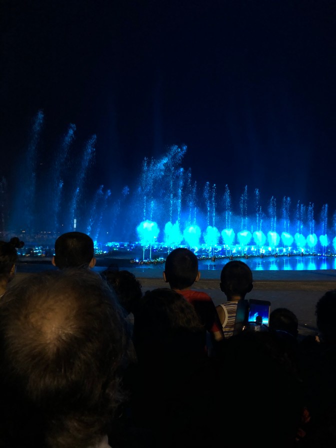 Every night in Dalian, by the waterfront next to the Convention Center, there is a light show at the fountain. There are huge streams of water of different colors and shapes, all accompanied by music. The show draws thousands of people every night!